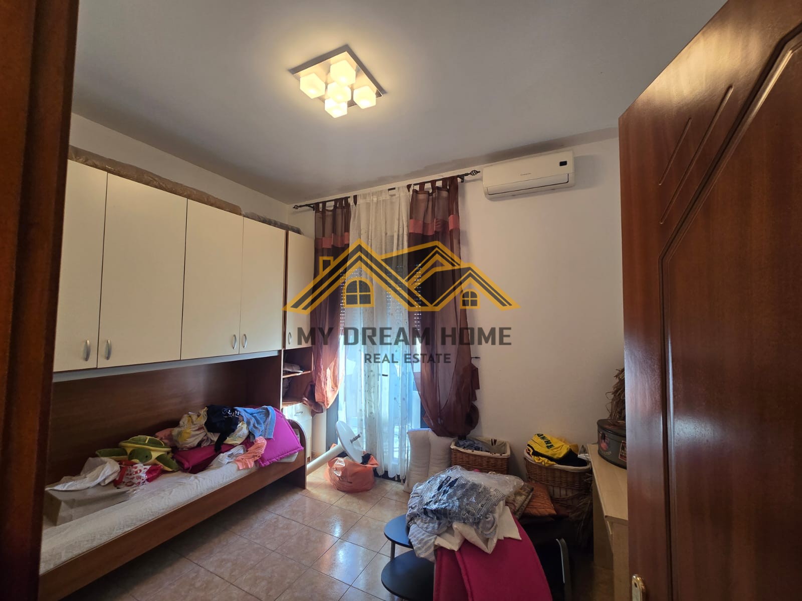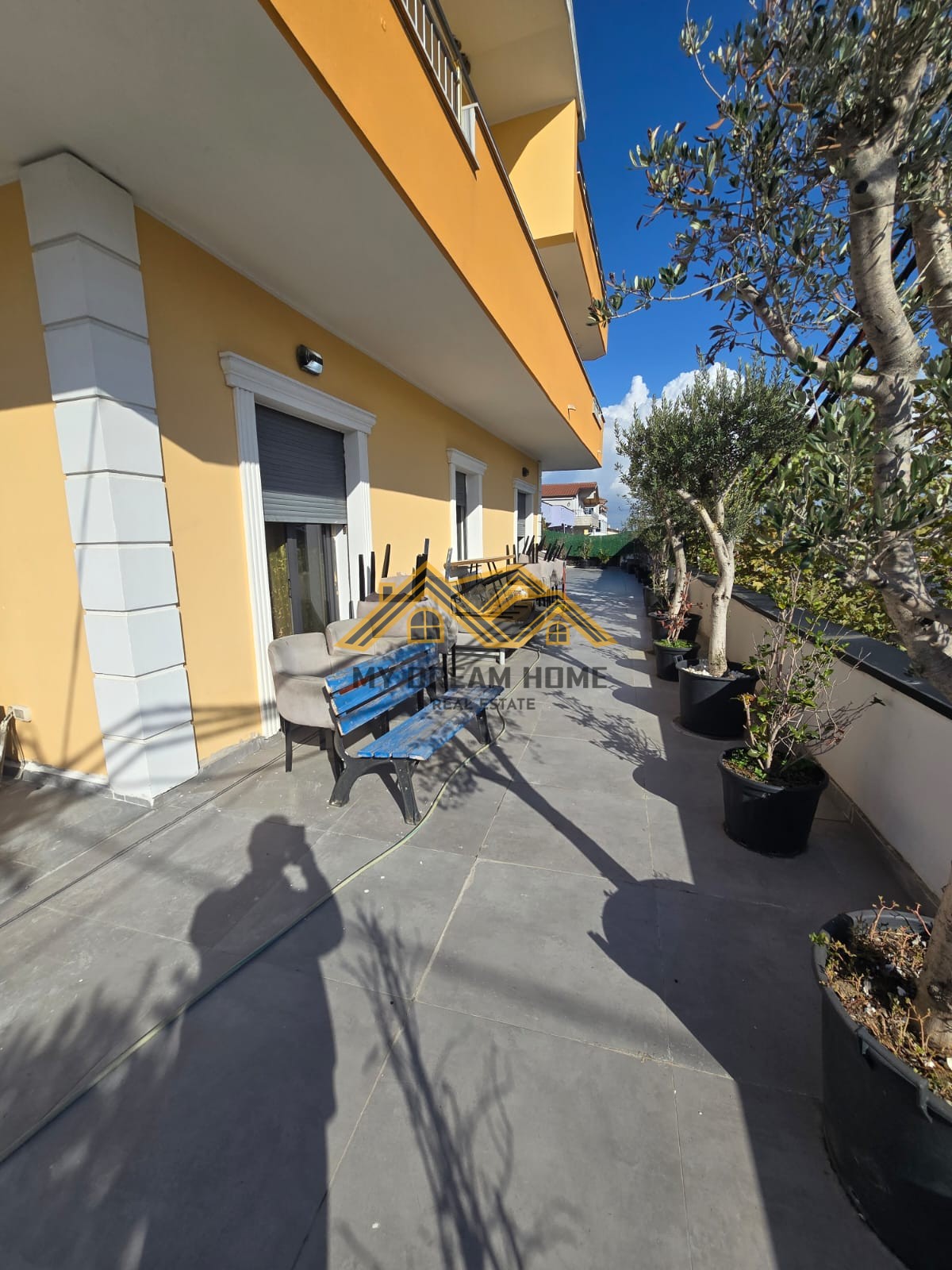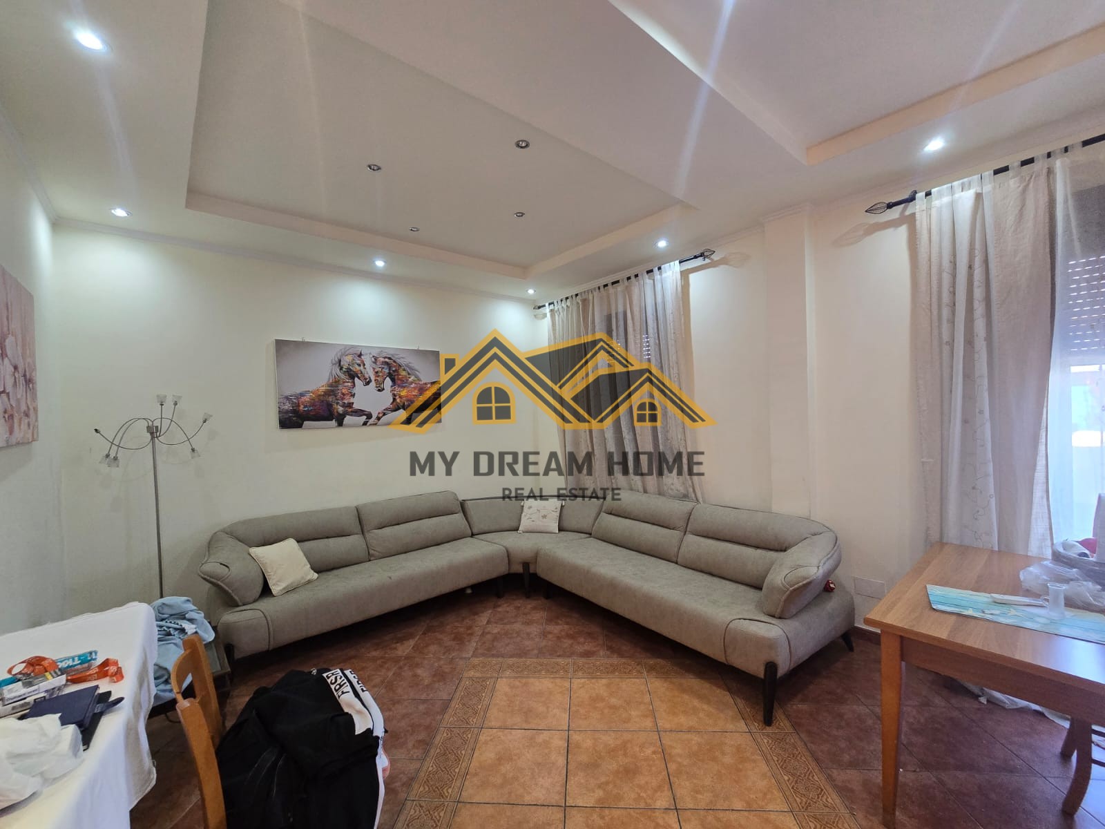 Organizohet nga koridor nje dhome ndenje, kuzhine, 2 dhoma gjumi, 2 tualete dhe verand , jepet me qera per afat gjate.