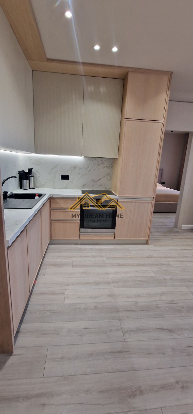 Shitet apartament 1+1, 80 m², i organizuar në mënyrë funksionale, i pozicionuar në katin e 5-të banim të një pallati modern me ashensor.