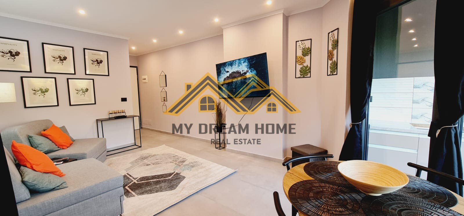dhoma e ndenjes me kuzhine ku ka nje dalje ne ballkon, si dhe 1 tualete.