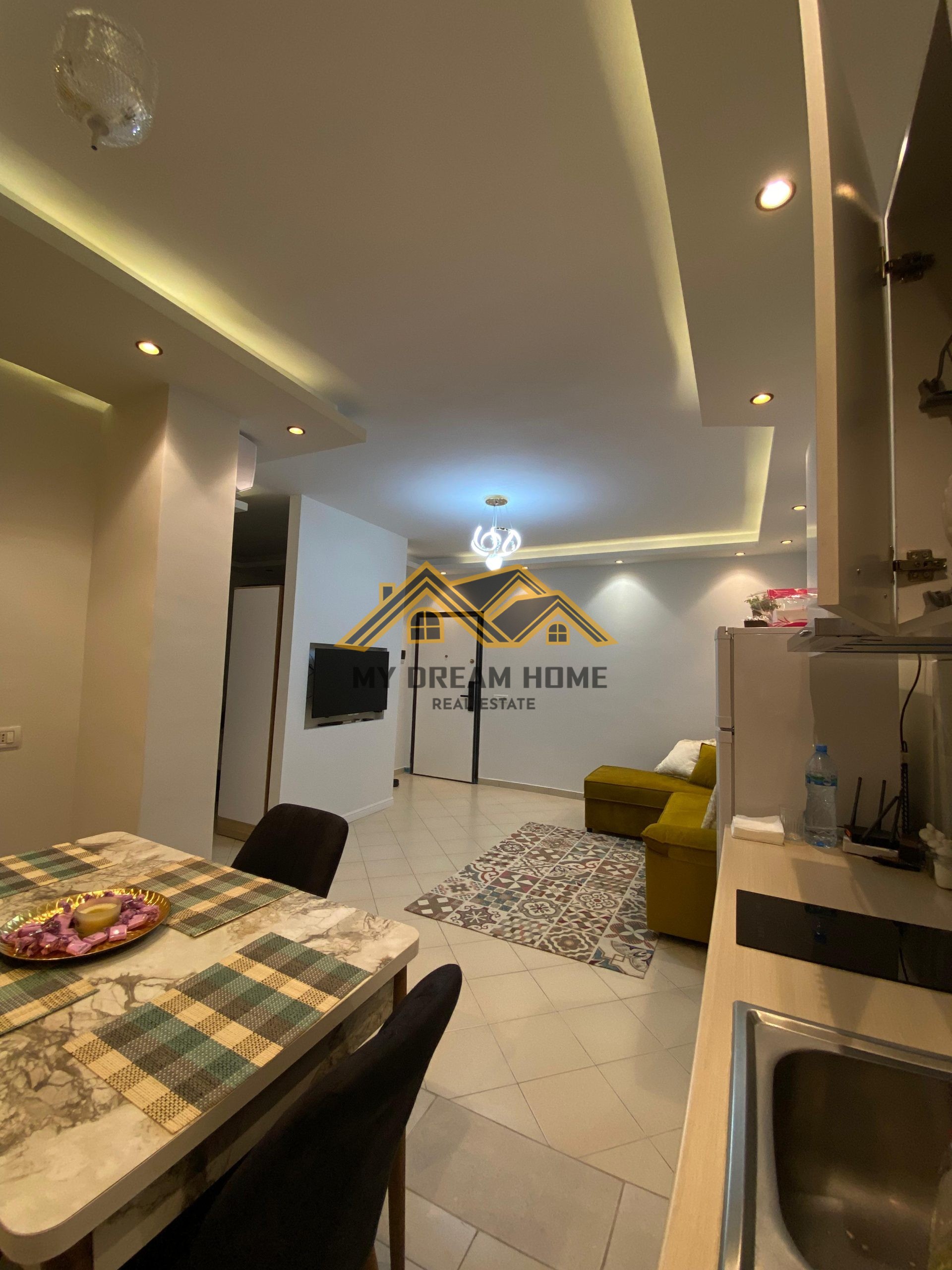 Apartamenti ndodhet te nje pallati te ri ne zonen e Shkembit te Kavajes ne nje zone te qete Afer Hotel Majestic. Prona eshte totalisht e mobiluar ne menyre bashkekohore dhe eshte shume e pershtatshme per shtepi pushimi apo booking dhe airbnb per shkak te pozicionit te saj te favorshem afer detit. Disponon nje sallon + kuzhine, nje dhome gjumi dhe nje tualet. Shitet me nje vlere prej 82000 milion lek.