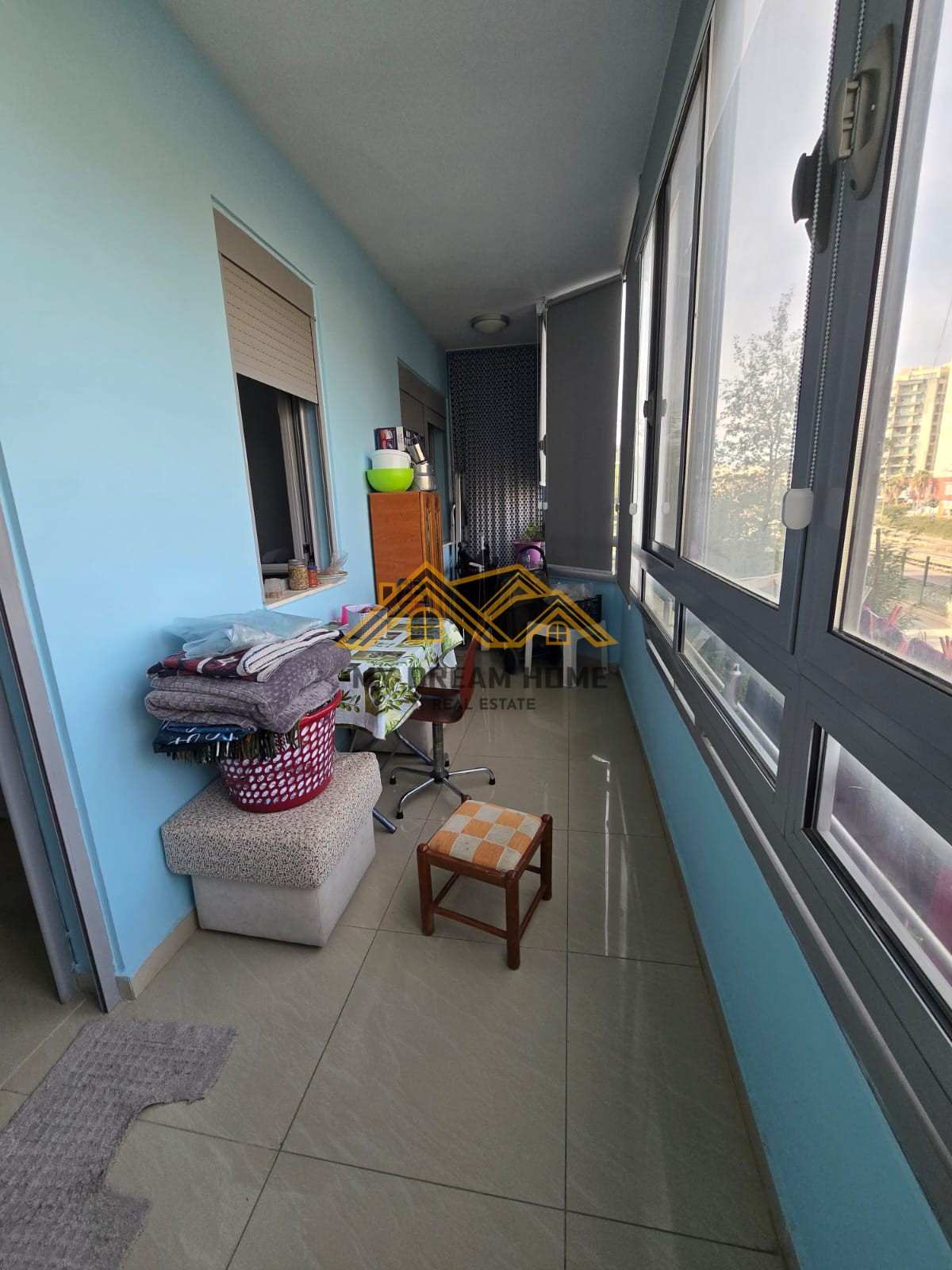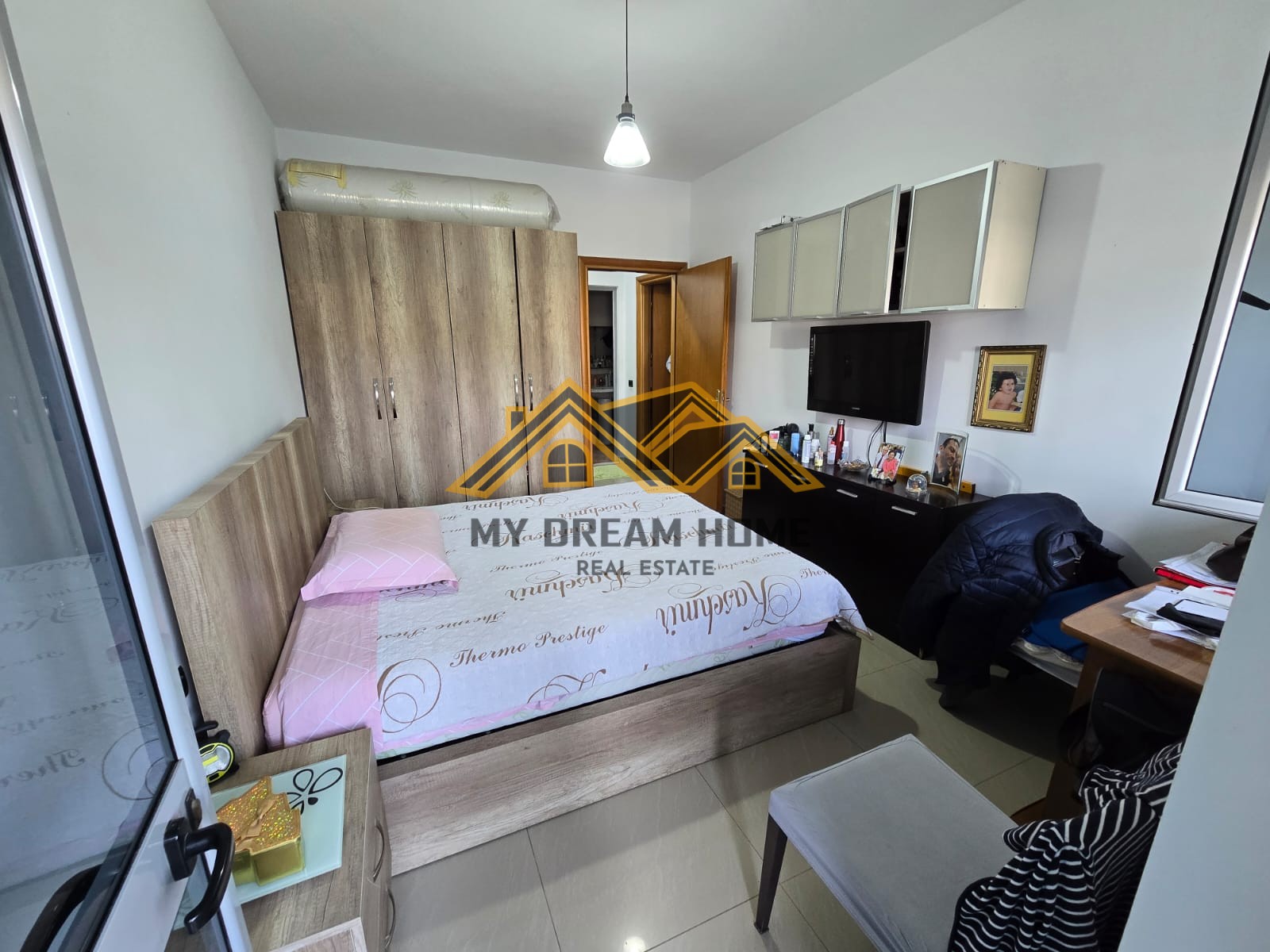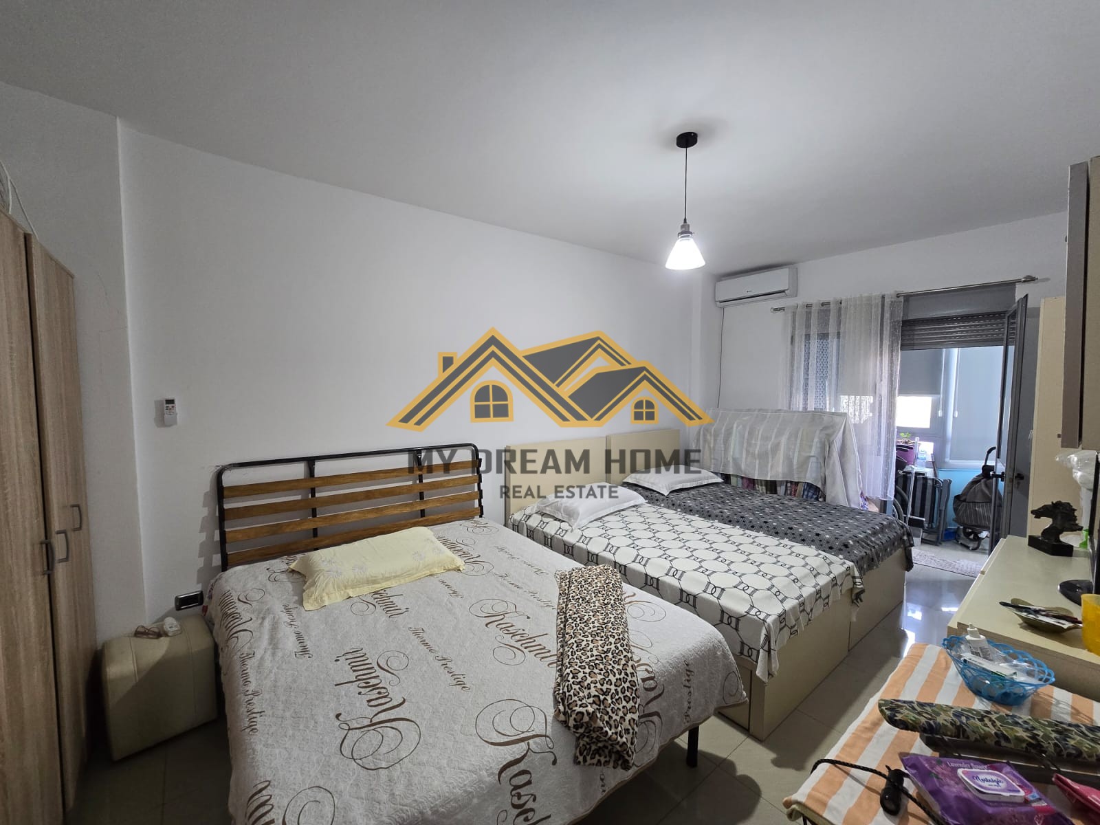 Apartamenti organizohet ne, 1 ambjent ndenje sebashku me guzhinen, 2 dhoma gjumi dhe 1 tualete dhe 1 ballkon te madhe.